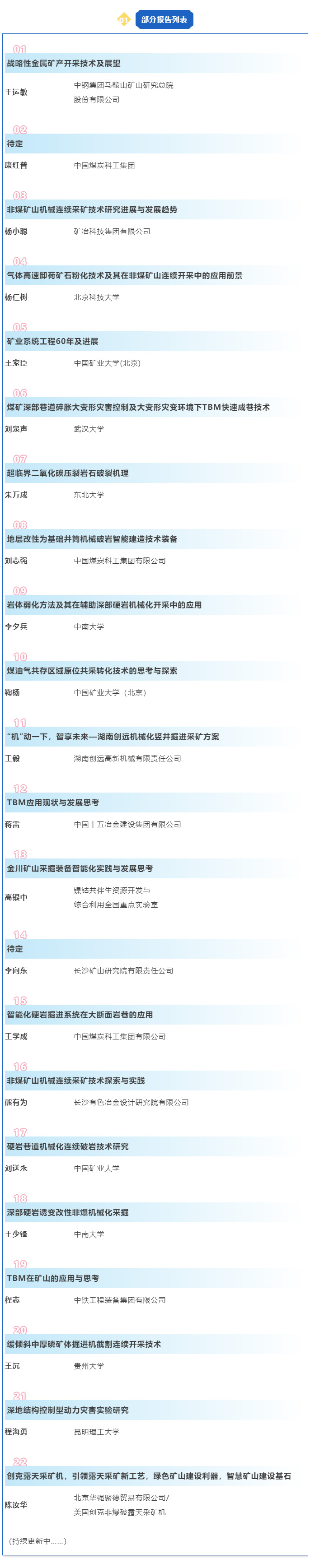 會議將邀請院士、專家、學者就國內外非煤礦山機械連續采礦裝備、技術和應用研究方面進行深入研討與廣泛交流,歡迎礦業企業、科研和設計單位、高等院校等的礦山管理人員、科學研究和工程技術人員積極參會,歡迎各大企業和設備廠商踴躍參加并提供支持。